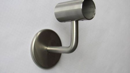 In einer Fensterlaibung sollte ein Handlauf als Absturzsicherung montiert werden. Das Problem dabei war, dass die Laibungsflächen stark unterschiedlich schräg geputzt waren. Mit Hilfe unserer Standardkonsole mit Aussengewinde M12 (ES.15.13.016) und einem Rohraufsatz mit Innen-Gewinde M12 konnte das Problem flexibel gelöst werden, ohne für jeden Laibungswinkel eine extra Konsole fertigen zu müssen.